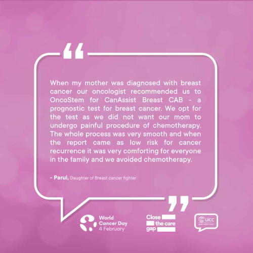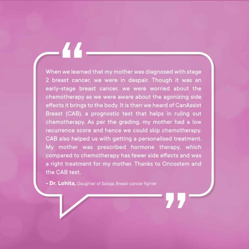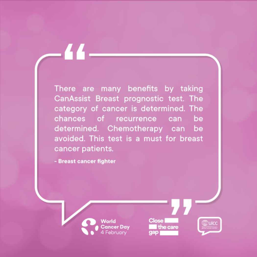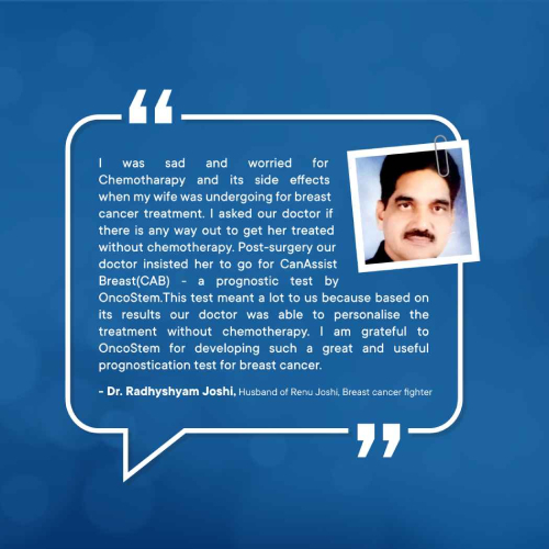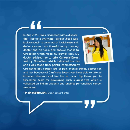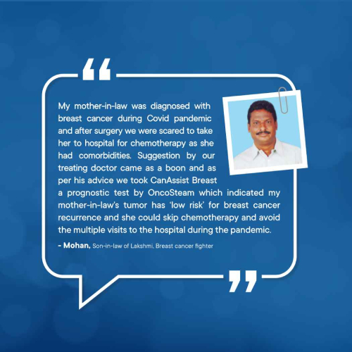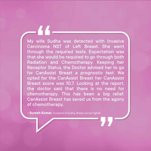 Many patients with early breast cancer can avoid chemotherapy, which is indeed very important looking at the economic benefits and the health benefits patients can get based on science and not just assumptions. The best part is this can be done at nominal additional cost. CanAssist Breast is more reliable as it is validated on Indian patients and saves more time as it is performed in India. I have prescribed a couple of patients, and they have definitely benefited. I am quite happy with the service.